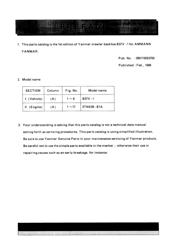 Yanmar B37V-1 Excavator Parts Catalog for AMMANN