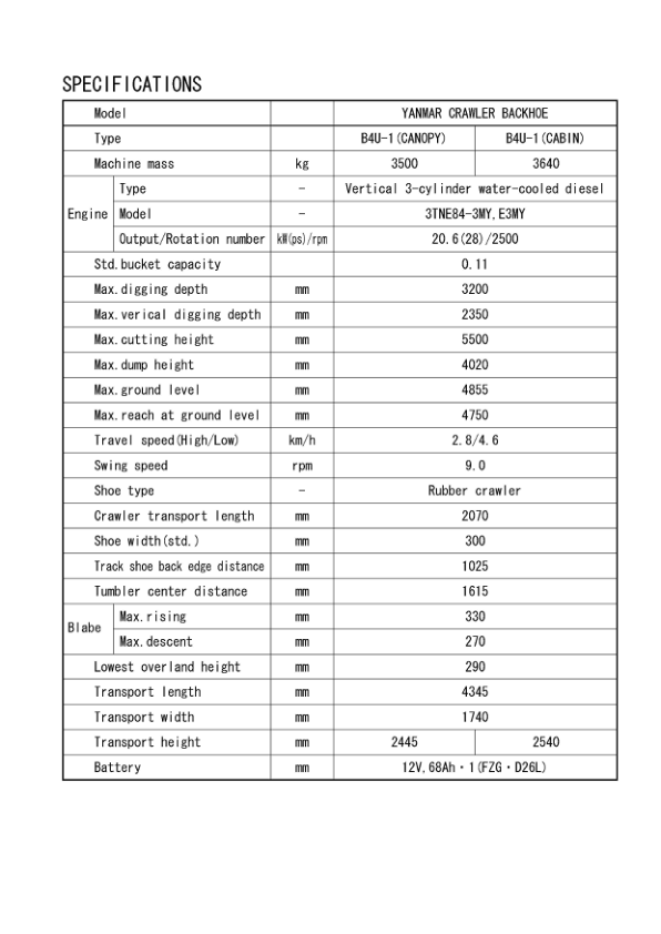 Yanmar B4U-1 Excavator Parts Catalog Wiring Diagram