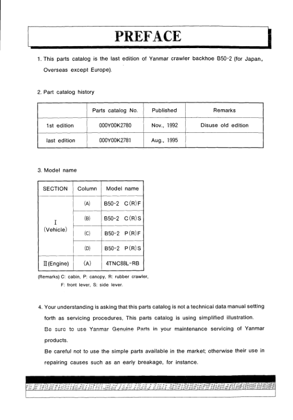 Yanmar B50-2 Excavator Parts Catalog for Japan and Overseas