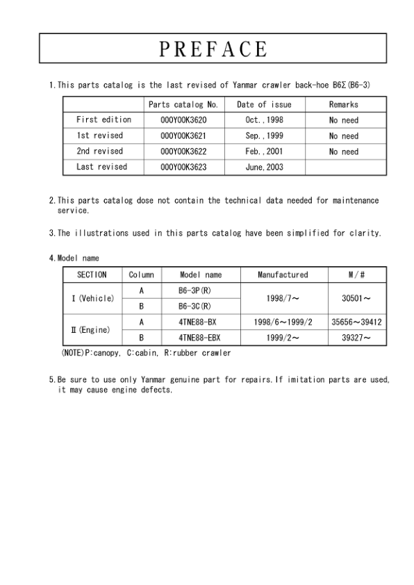 Yanmar B6-3 Excavator Parts Catalog Wiring Diagram