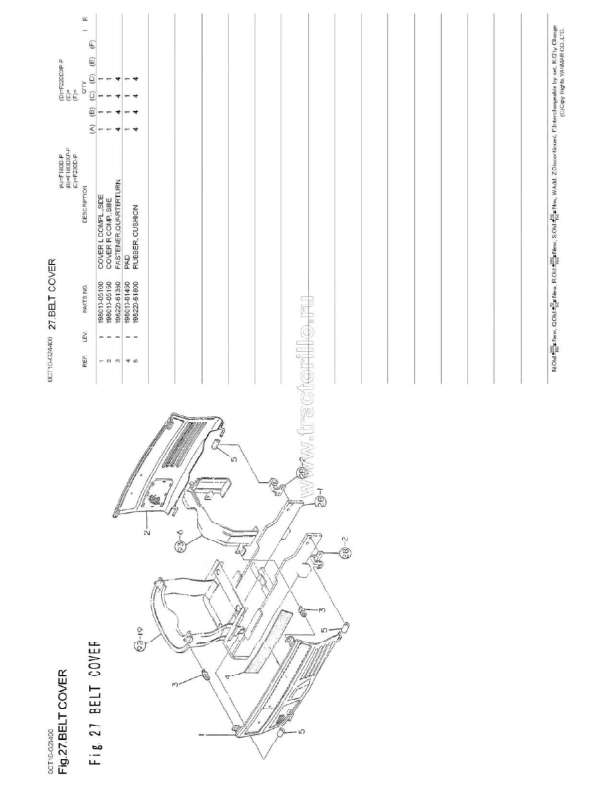 Yanmar F180 F220 Tractors Parts Catalog is a comprehensive guide providing detailed exploded views and part numbers for Yanmar F180 and F220 tractors. This catalog facilitates easy identification and ordering of replacement parts, ensuring efficient maintenance and repair of your tractor.