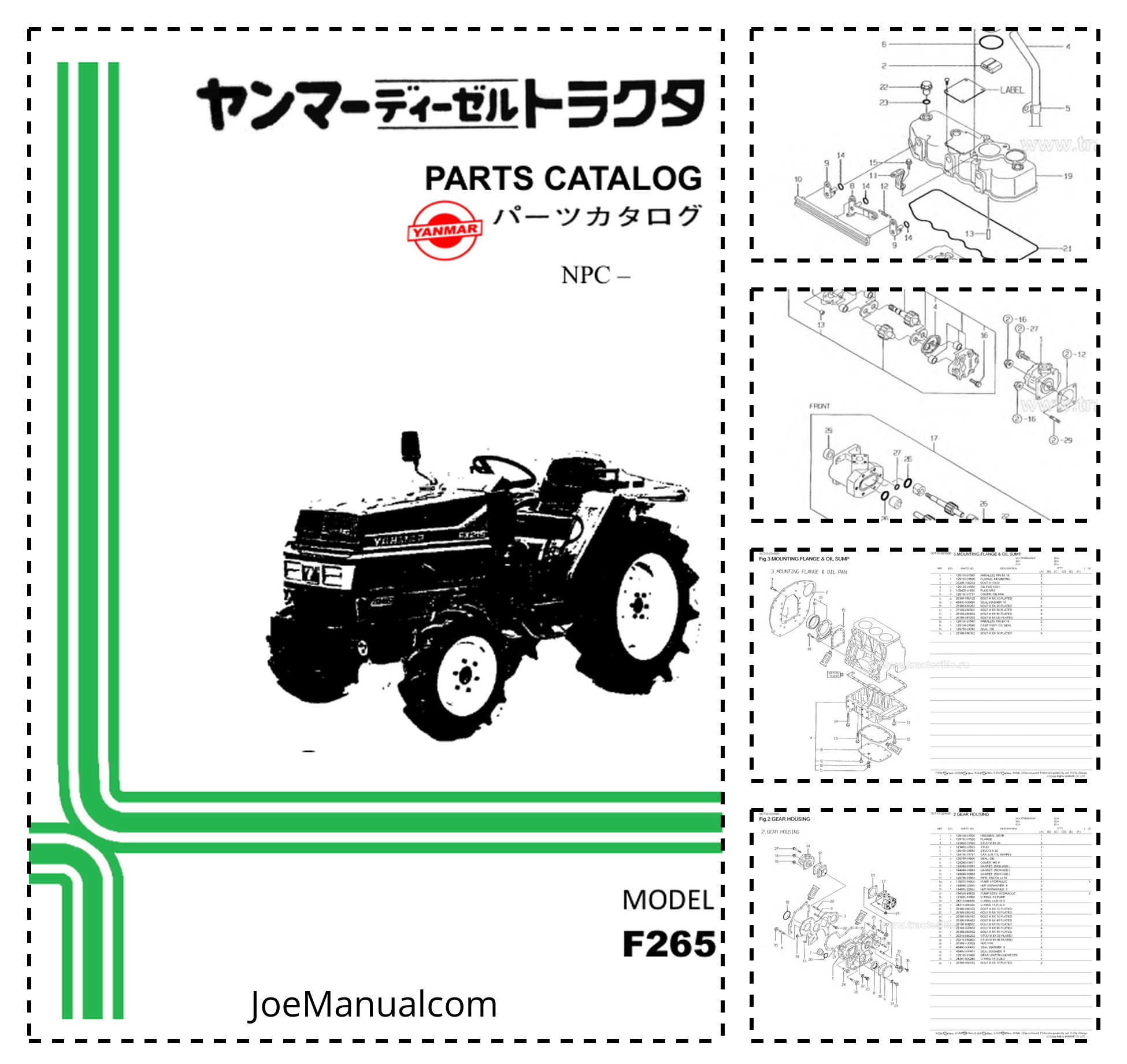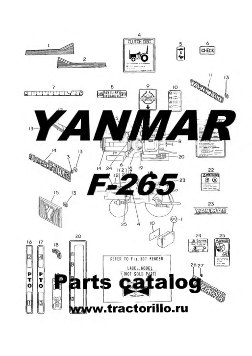 Yanmar F265 Tractors Parts Catalog. This comprehensive parts catalog provides detailed exploded views and part numbers for the Yanmar F265 tractor model. It is an essential resource for maintenance, repair, and parts identification, ensuring accurate ordering and efficient servicing of your tractor.