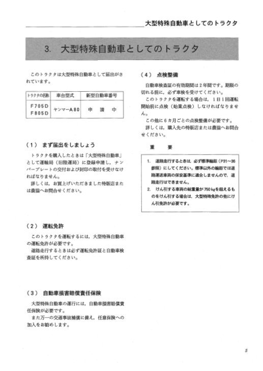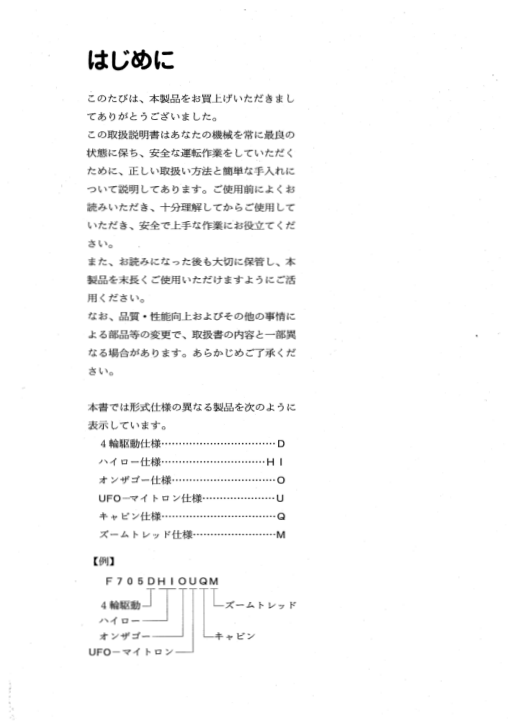 Yanmar F705 F805 Tractors Operation and Miantenance Manual JA