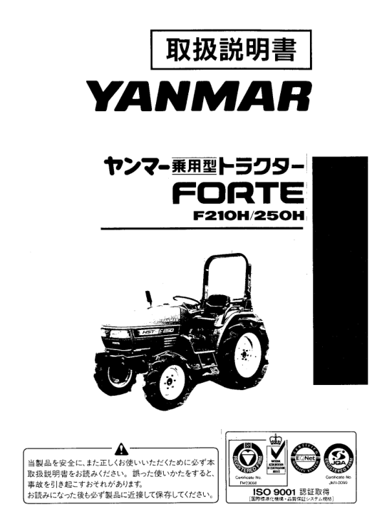 Yanmar Forte F210H 250H Tractors Operation and Miantenance Manual JA