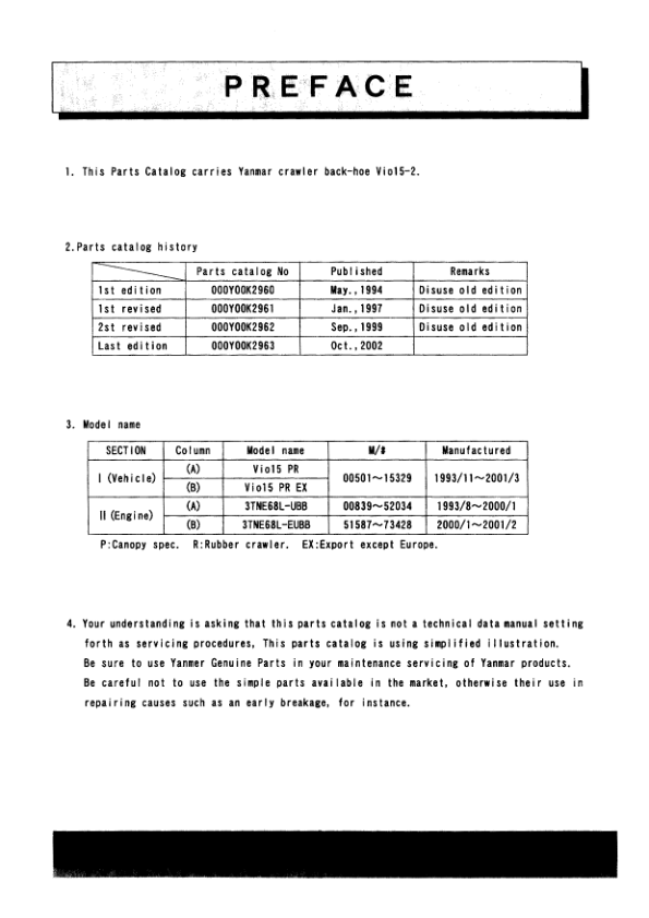 Yanmar VIO15-2 Excavator Parts Manual Wiring Diagram provides comprehensive parts information and detailed wiring schematics for the Yanmar VIO15-2 excavator model. This manual is an essential resource for maintenance, repair, and troubleshooting, offering exploded views, part numbers, and electrical diagrams to assist technicians in accurately identifying and replacing components. It ensures efficient and effective service, reducing downtime and maximizing the excavator’s operational lifespan.