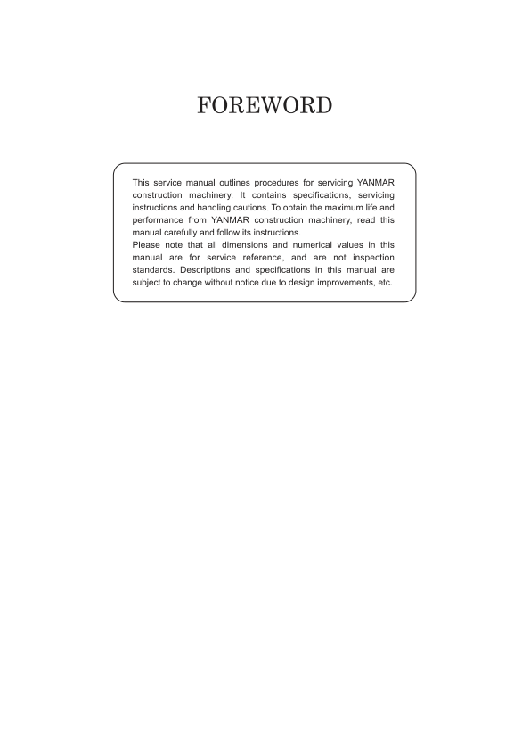 This service manual is a vital resource for operators, technicians, and owners of Yanmar Vi O30-2 and Vi O35-2 EP excavators. Designed for comprehensive understanding and efficient troubleshooting, it provides detailed instructions for maintenance, repair, and operational guidance. Whether you’re performing routine checks or addressing complex issues, this manual ensures you have the tools to keep your equipment running smoothly.