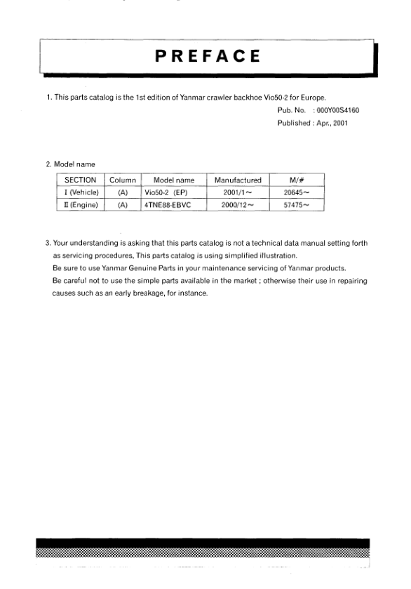 This comprehensive parts manual includes the wiring diagram for the Yanmar VIO50-2 Excavator. It provides detailed illustrations and part numbers for accurate identification and ordering. Essential for maintenance, repair, and troubleshooting, this manual ensures optimal equipment performance and longevity. A valuable resource for technicians and operators.