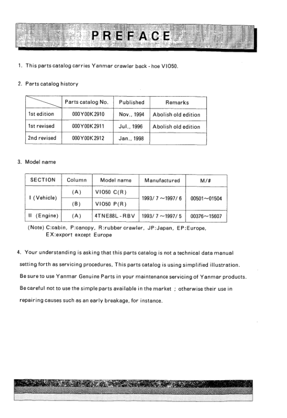 Comprehensive parts manual and wiring diagram for the Yanmar VIO50 Excavator. Essential for maintenance, repair, and troubleshooting. Provides detailed component illustrations and electrical schematics. Enables accurate parts identification and efficient electrical system diagnostics. A valuable resource for both experienced technicians and owner-operators ensuring optimal machine performance.