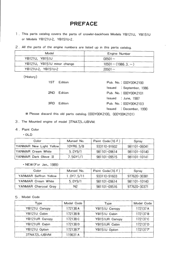 Yanmar YB121U YB151U Excavators Parts Manual Wiring Diagram