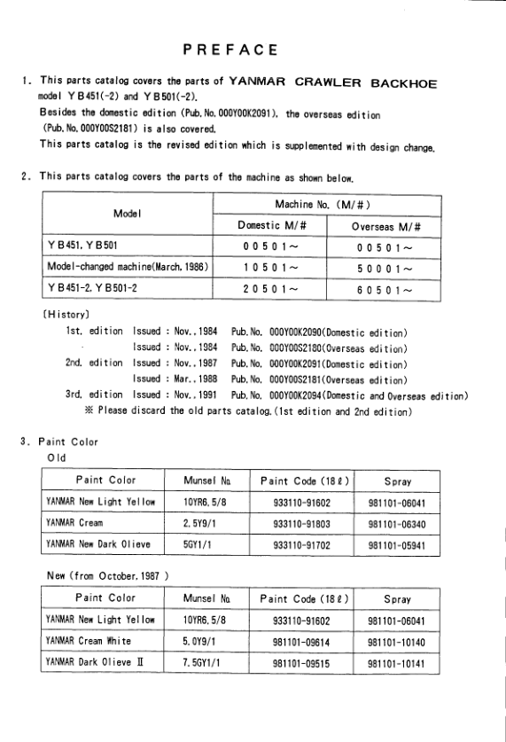 Yanmar YB451 YB501 Excavators Parts Manual Wiring Diagram