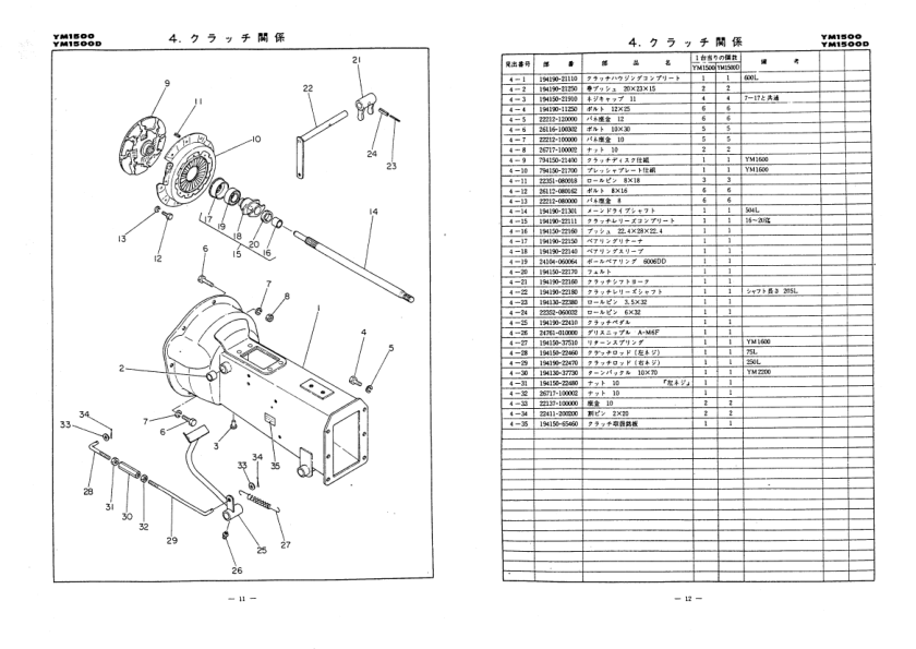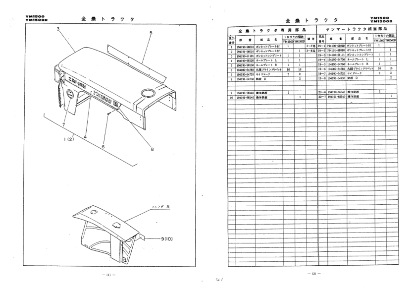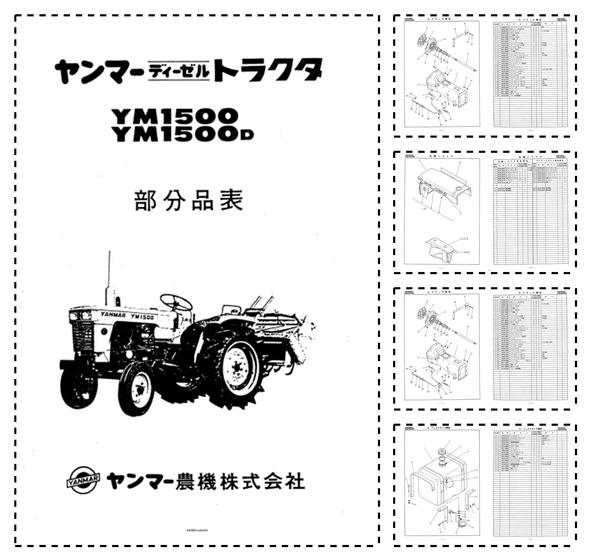 Yanmar YM1500 YM1500D Parts Catalog Electrical Wiring Diagram JA