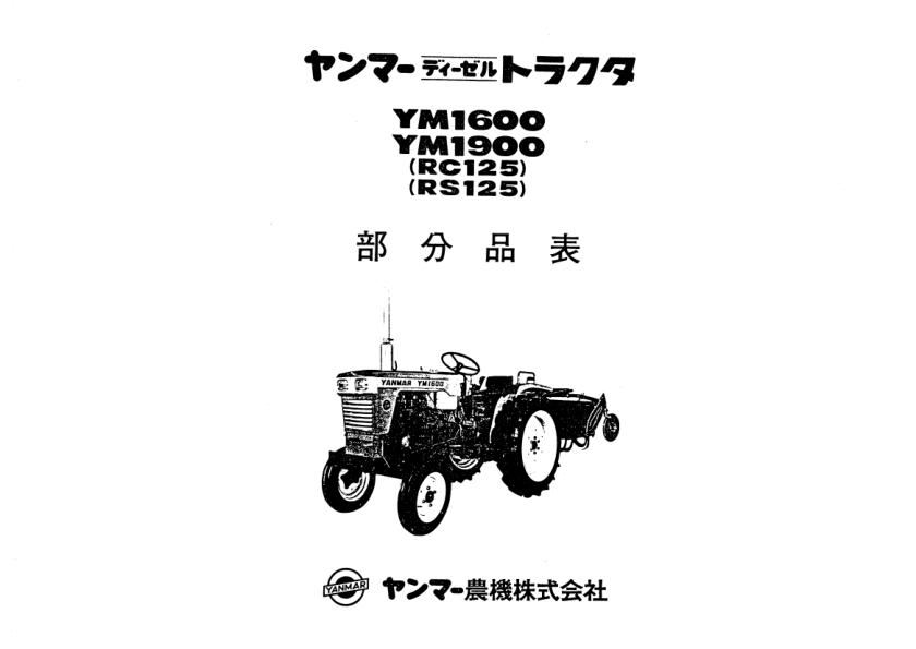 Yanmar YM1600 YM1900 Tractors Parts Manual Wiring Diagram
