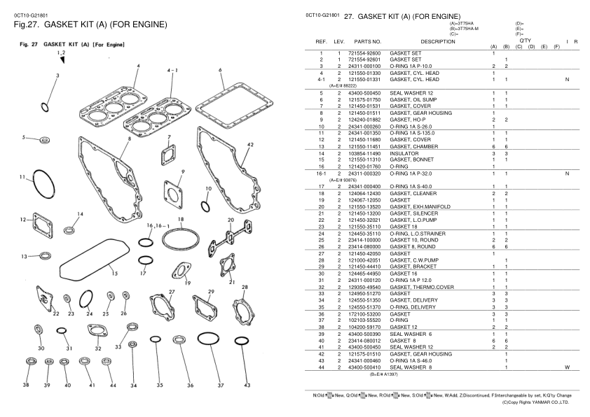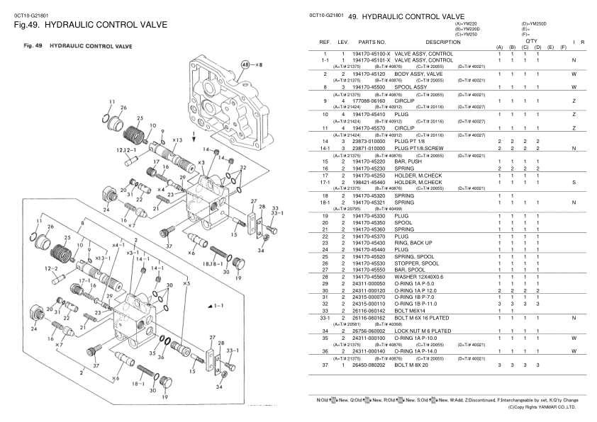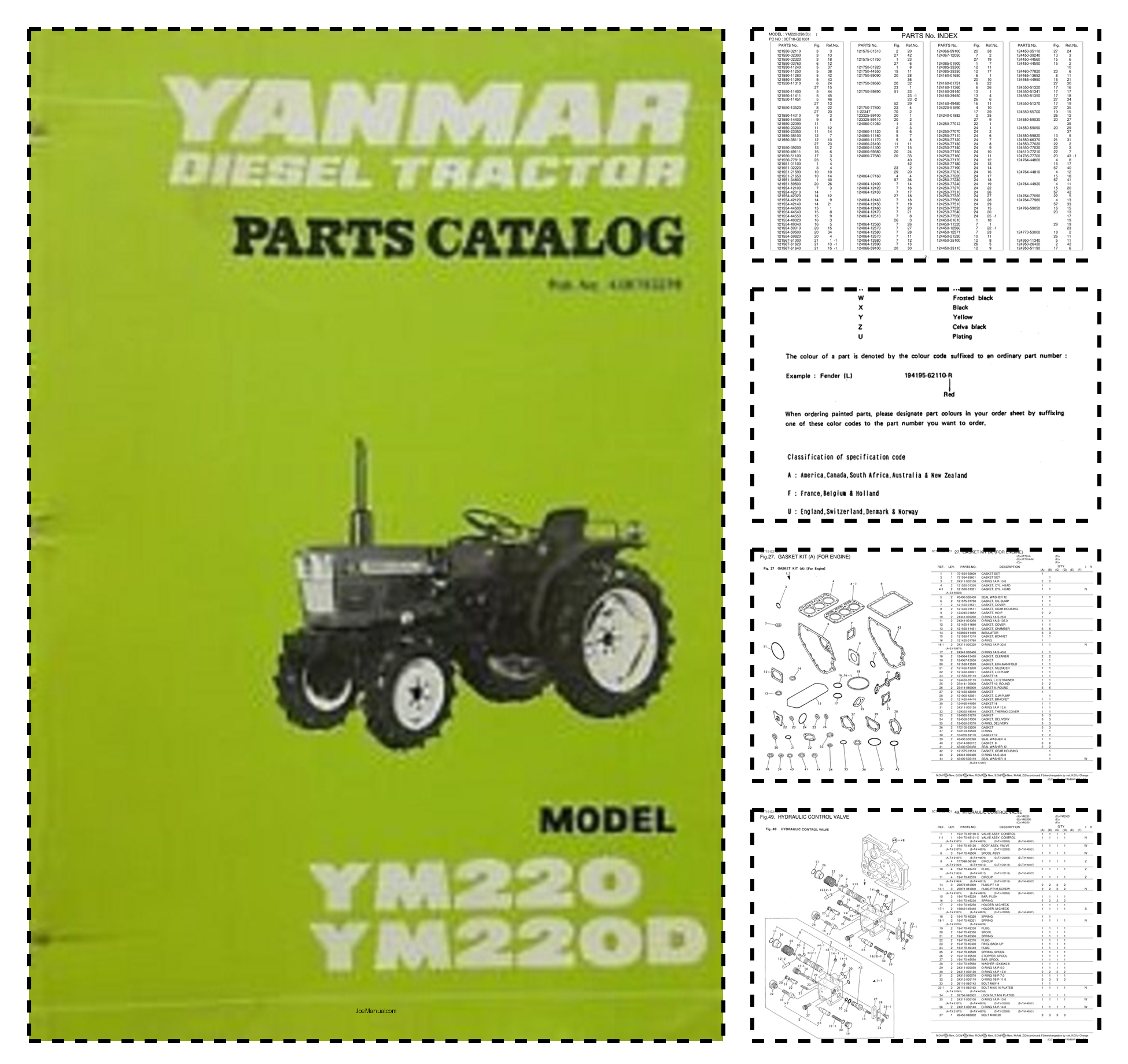 Yanmar YM220 YM220D Tractors Parts Catalog Electrical Wiring Diagram