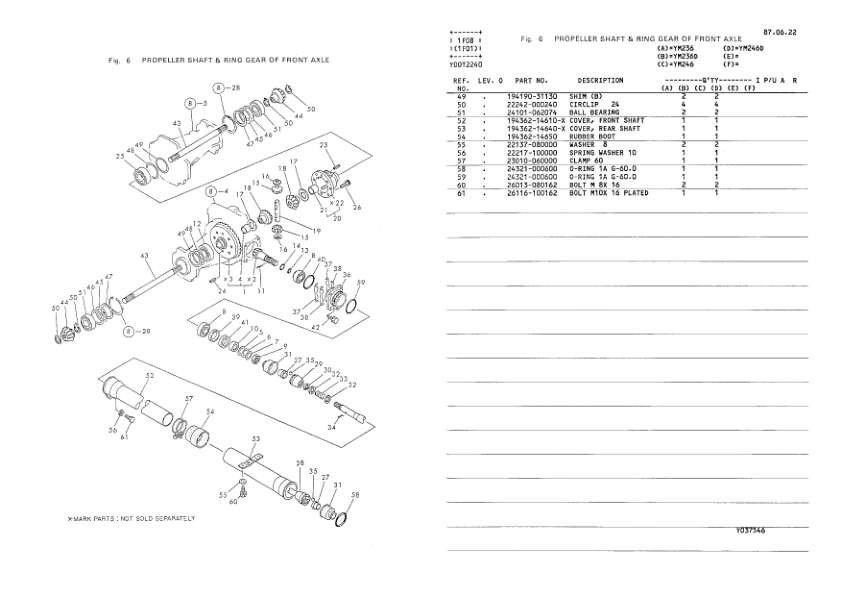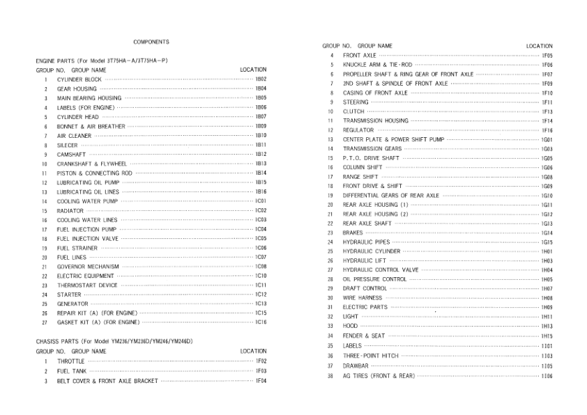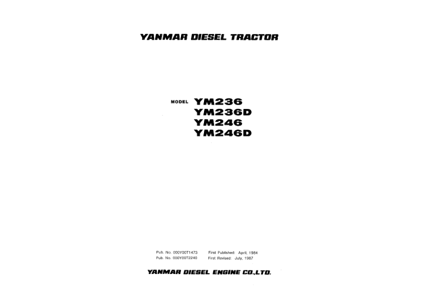 Yanmar YM236 YM236D YM246 YM246D Tractors Parts Catalog