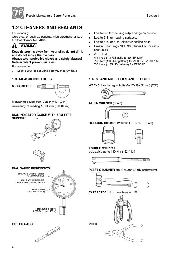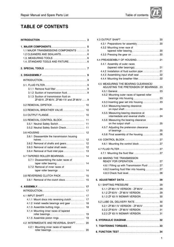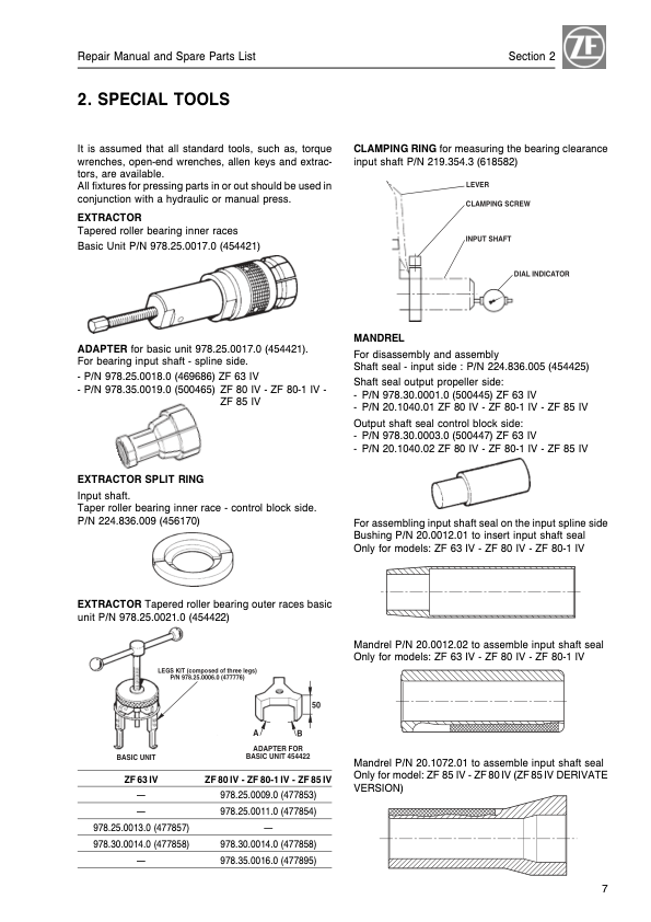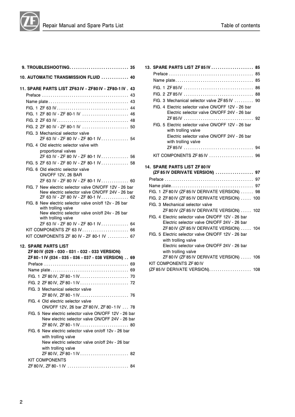 ZF 63 IV 80 IV 80 1 IV 85 IV Transmission Repair Manual Parts Catalog