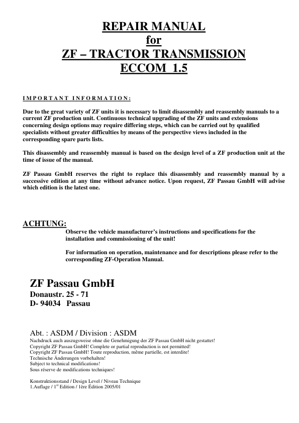 ZF ECCOM 1.5 Transmission Repair Manual