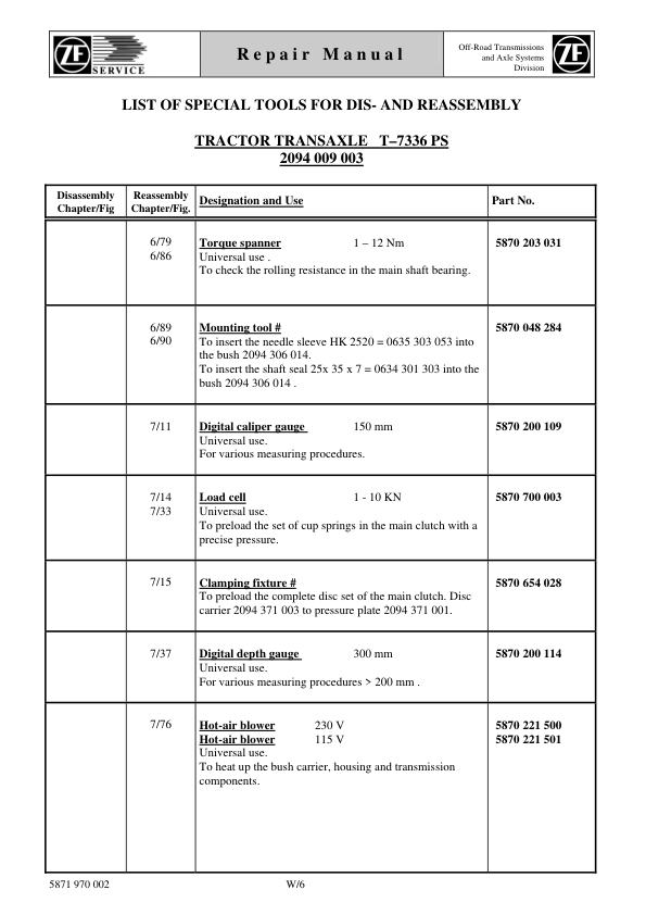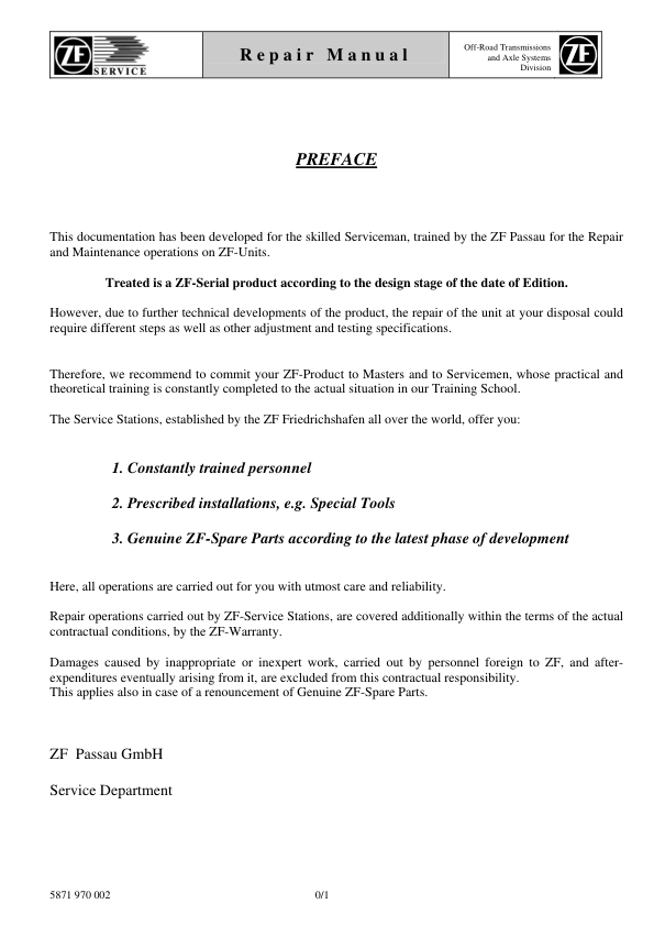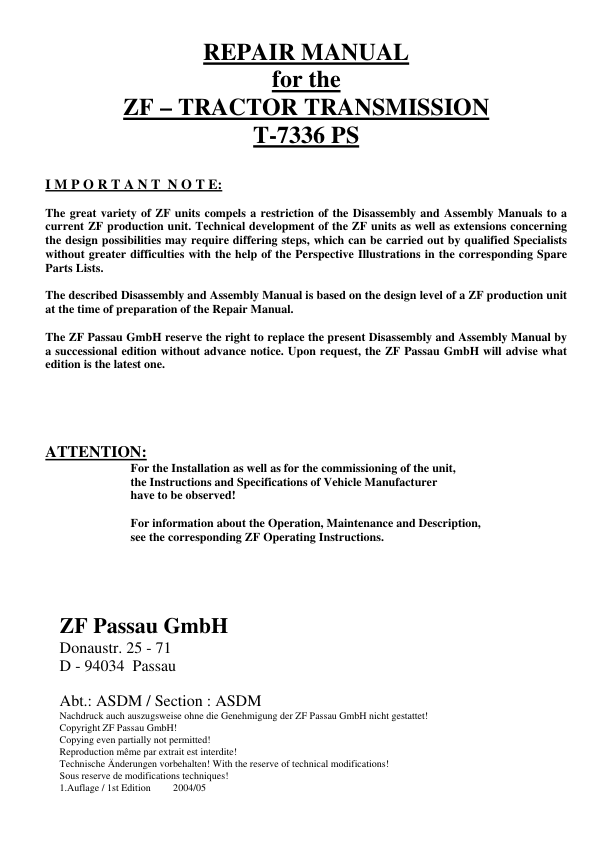 ZF T-7336 PS Transmission Repair Manual